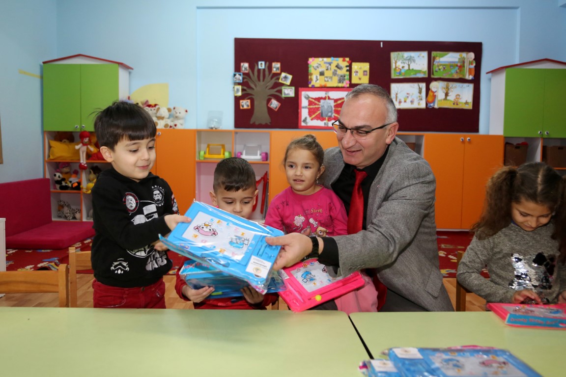 Başkan Yılmazer minik öğrencilerle fotoğraf çekilip hediyelerini taktim etti. Okul Müdürü Selahattin Çağır, anasınıfı öğretmenleri Songül Aksu Yıldırım, Ayşenur Korkmaz ve öğrencilere eğitim dönemlerinde başarılar diledi.