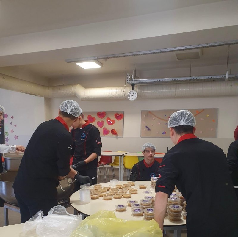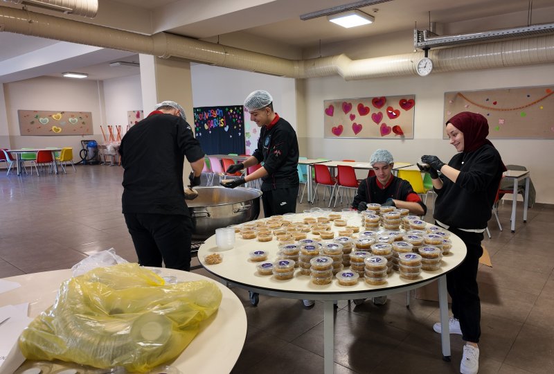 Helvalar, Lokman Hekim Mesleki ve Teknik Anadolu Lisesi’nin aşçılık bölümü öğrencileri ve öğretmenlerinin emekleri ile yapıldı. Daha önce de lezzetleriyle gönülleri kazanan usta Serhat Aha, öğretmen Emel Demirel Yaman ve öğrenciler Alperen Avcı, Şeymanur Miraç Demir, Efe Çayıroğlu, Dorukhan Sarp Çetin, Yağız Yılmaz, Metehan Acet, Arda Okuç ve Ensar Yetkin tarafından hazırlandı.